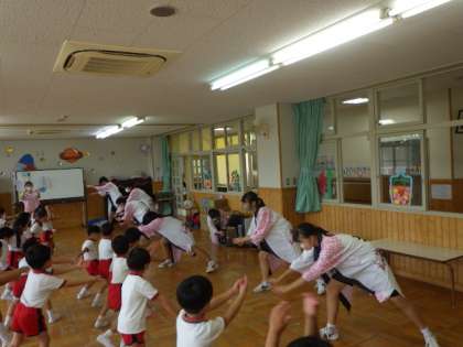 上の写真は、こども園や幼稚園に赴き、ソーラン節を披露したり、園児と関わったりするしたグループです。
