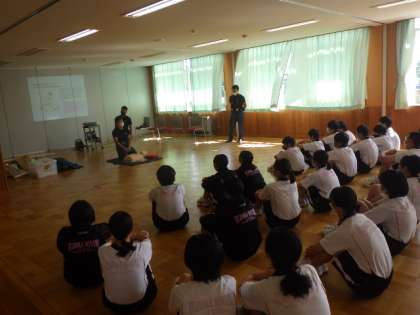 市消防本部予防課、市北消防署小原分署の方々からは、消火器訓練、救急救命講習、高齢者避難について教えていただきました。「災害が起きた時に自分が助けられる立場になるのはもちろん、藤岡南地区のみんなで落ち着いて行動していける機会にしていきたい」という生徒の声が聞かれました。