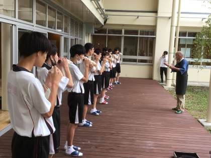 上の写真は、ふれあいフェスティバルでの法螺貝演奏に向けて練習をしているところです。