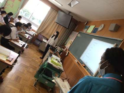 下の写真は、英語の授業です。ALTの先生の発音を聞きながら、新出単語を確認しているところです。