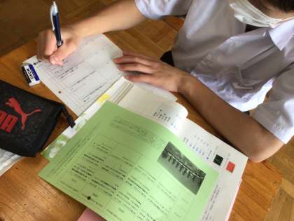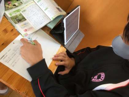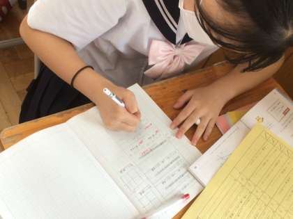 下の写真は、数学の授業です。授業内容をノートにわかりやすくまとめ、さらに理解を深めているところです。