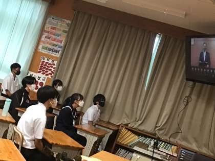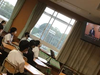 前期終業式をリモートで実施しました。