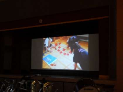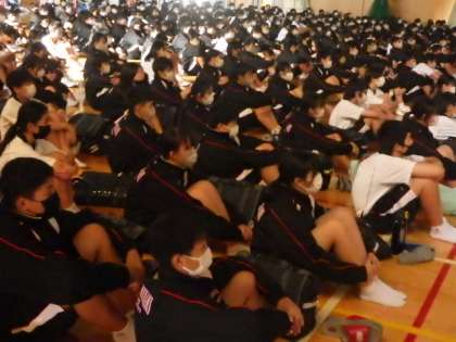 また、生徒会役員が作成した「ふれあいフェスティバル」に向けて頑張ってきた自分たちを振り返るムービーが上映されました。映像に込められた思いに共感し、生徒全員が見入っていました。