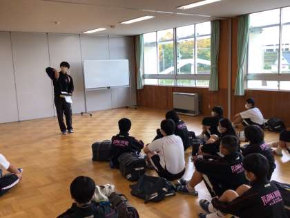 上の写真は、生活委員会です。委員長から、今後の活動について提案がされている様子です。