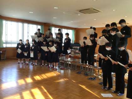 中央の写真は、音楽です。開校以来、本校の伝統として受け継がれている愛唱歌の音程をとっています。