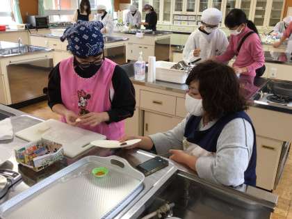 1・2学級は授業参観で、親子家庭科を実施しました。