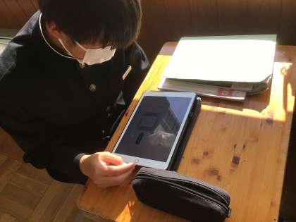 写真は、学習アプリの問題を解いて、習得率を高めているところです。