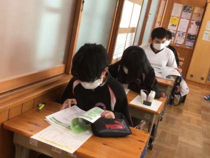 個別懇談会を終え、3年生が私立高校の願書の準備を進めています。