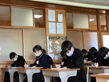 本日、3年生が学習診断テストを行いました。自分の進路実現に向けて力を高めている3年生。実力を発揮してくれていると期待しています。