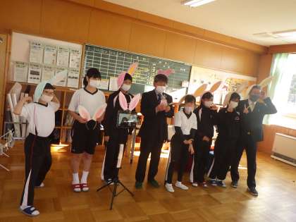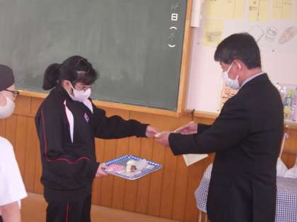 また、1・2学級の生徒が歓迎の意を込め、自分達で制作したコースター等を贈りました。