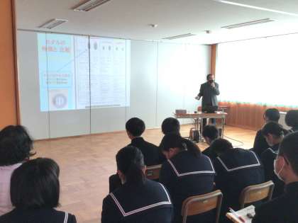 数ある団体の中でも、特に生徒達が興味を抱いたについて調べ、興味を抱いた西中山ホタル保全会会長の中村さんを講師に招き、お話を伺いました。