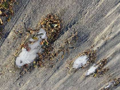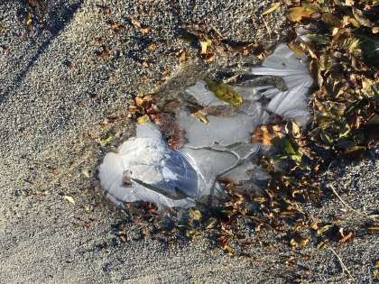 運動場の水たまりは一面にびっしりと氷が張っていました。