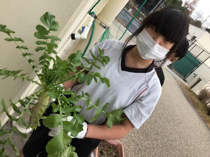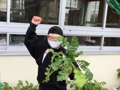 本日、1・2学級の生徒達がダイコンの収穫をしました。