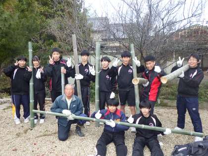 「笑う門には福来る」とよく言われますが、明日からは竹の切り口が大きな笑顔になるように生徒たちがカットしていきます。