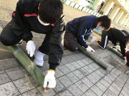 3年生の有志が、新年の門松飾りの制作を始めています。