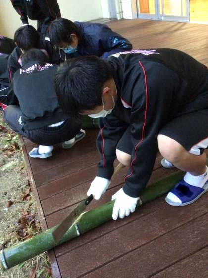 本日は、ついに竹の切断に成功した生徒が出てきました。