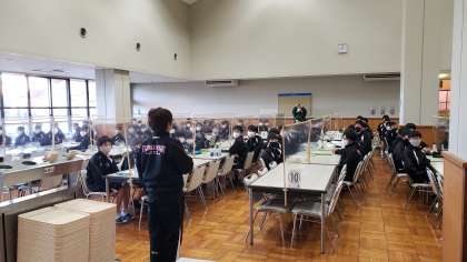 朝食後に「ONE PEACEの会」を行い1日目の振り返りと2日目の目標を各クラスの代表者が語りました。