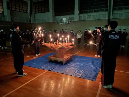 誓いを述べた後、合唱をしました。合唱を通して夢を実現するために励まし合う仲間としての団結力を高めました。