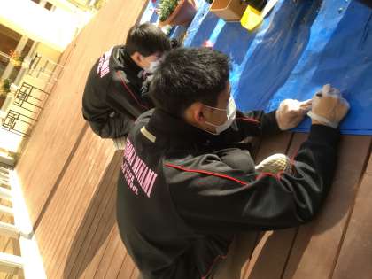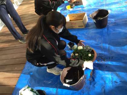 環境委員会が寄せ植えを作成しています。