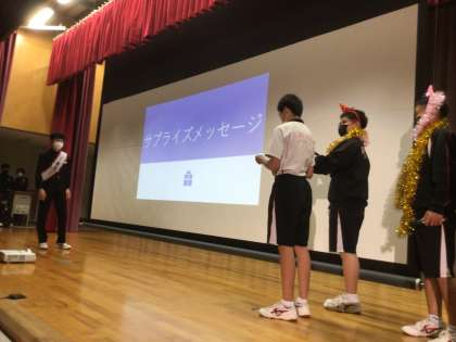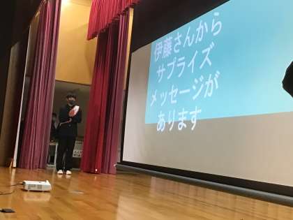 ヒントをもとに自分だという3年生が名乗りを上げました。また、後輩からの感謝の言葉が伝えられました。