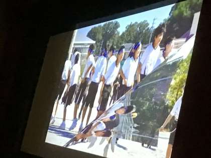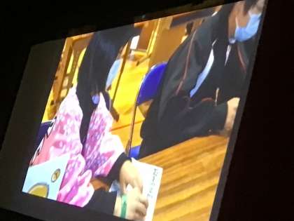 スライドスタッフが、3年生の中学校生活を振り返るスライドを披露しました。