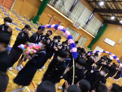 1・2年生全員で3年生を拍手で見送りました。