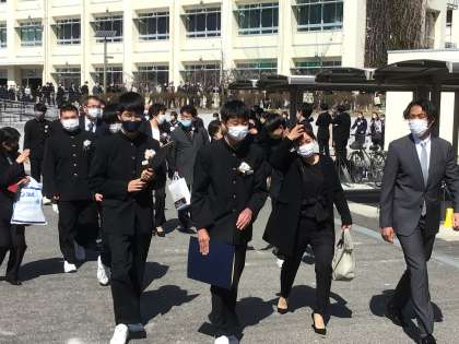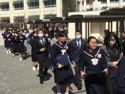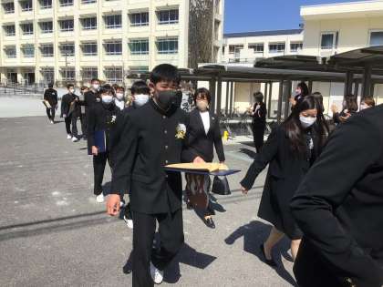 ここまで多くのご支援をいただいた保護者の皆様、今日も早朝から駐車場整理をしてくださった地域の皆様、総合学習等でともに活動してくださった方々。今日の卒業生の晴れ姿は、みんなで子どもたちの成長を願い、関わり続けていただいた成果であるとも感じております。