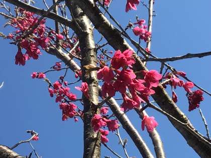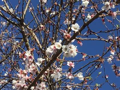 下の写真は、自転車門付近のカンヒザクラです。卒業式頃から咲き始め、満開が近いです。