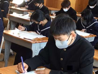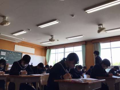 3年生は、学力テストに取り組みました。自分が学んできたことの習得率を確認する機会となりました。