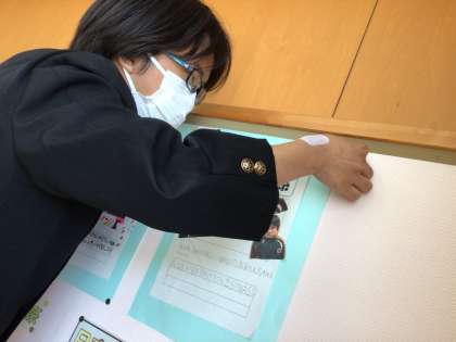 また、一生懸命に学級掲示物を掲示する姿が見られました。