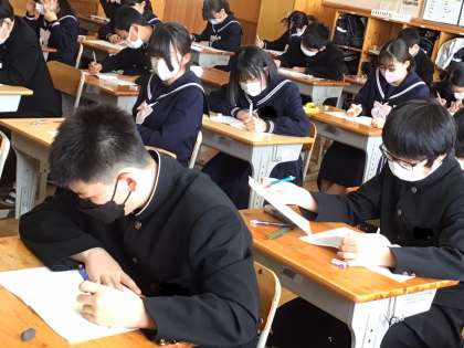 2年生は、本日、理科と数学の学力テストに取り組みました。