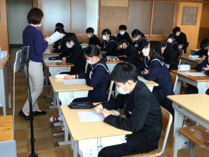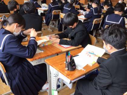 上の写真は、社会の授業です。「社会科の授業を通して、何を学ぶのか」という問いに対して、生徒たちがさまざまな意見を交わす時間となりました。