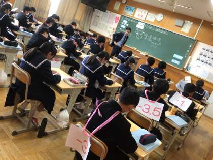 下の写真は、数学の授業で数直線を活用して、楽しく正負の数の認識を深める授業でした。