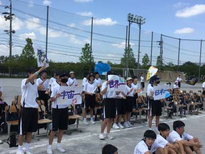 C団は3年生が画用紙のテロップを用意して応援を統率するスタイル、D団はリズミカルな手拍子で仲間を鼓舞するスタイルの応援でした。