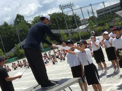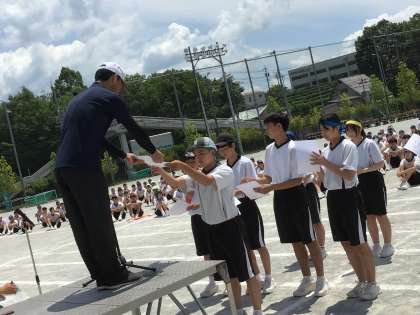 校長先生から直々に賞状や盾を受け取ると、代表生徒と学級生徒たちの表情が綻ぶ姿が見られました。