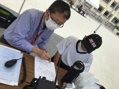 災害時にスマートフォン等が使用できない場合の、無線の有用性について実践していただきました。