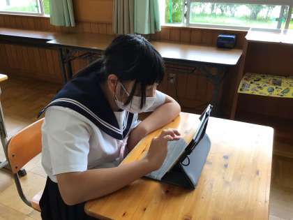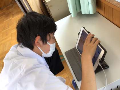 3年生が修学旅行にいくこともあり、東京について興味がある場所を調べ、学習用タブレットでまとめているところです。