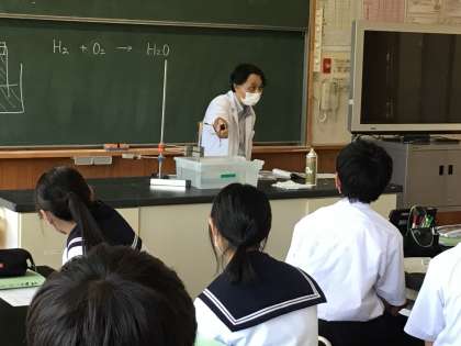 2年生は、ユージオメーターを使った実験を通して、気体の分子数と体積の関係を学びました。