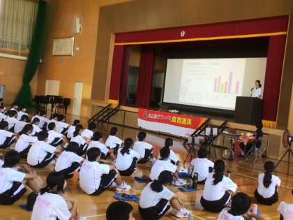 ポッカサッポロと名古屋グランパスの方を講師に招き、食育講座を実施しました。