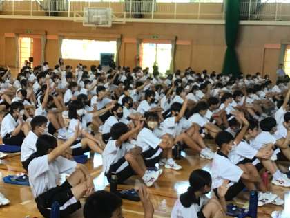 名古屋グランパスの管理栄養士の方から、朝食を毎日摂っている生徒は、学力も体力ともに好結果につながりやすいというデータが提示されました。また、生活習慣について現役Jリーガーの「自分の目標を達成するために、何が大切なことなのか考えることが大切だと感じています。ときには、我慢が必要となるときもあります。でも、そこで頑張ってきたから、Jリーガーになれた自分がいます。」という言葉を聞きました。
