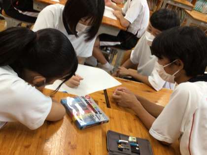 上の写真は、環境委員会の活動の様子です。明日から始まるFMCU(藤岡南クリーンアップ活動)に関するポスターを製作しているところです。