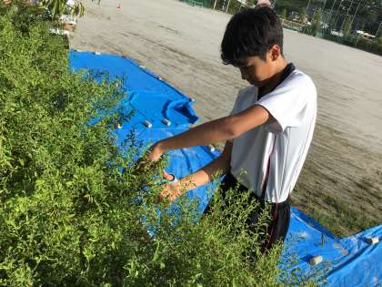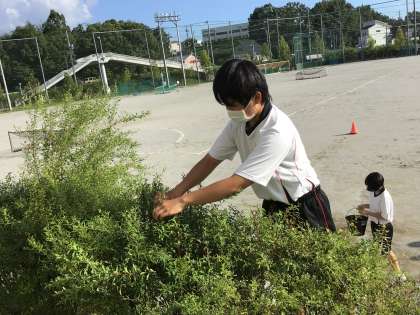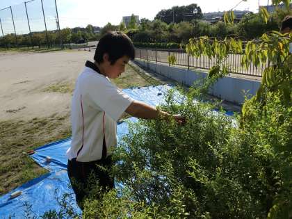 2年生の屋外清掃の生徒たちが、樹木の剪定を行いました。