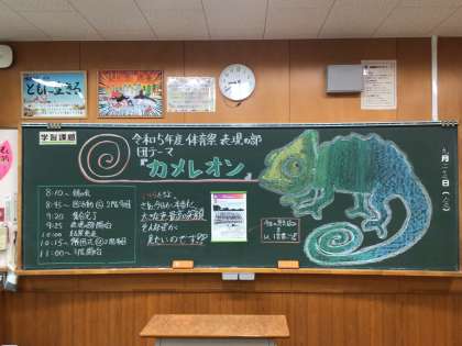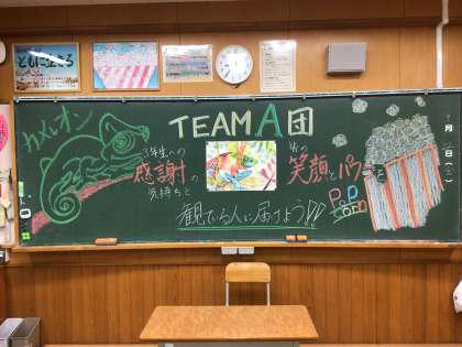 A団の生徒を出迎えた教室の黒板です。