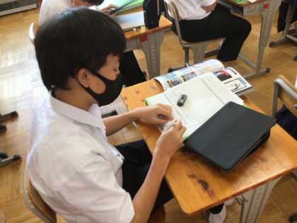 3年生の美術では、フジナンポスターグランプリと題して、藤岡南中のポスターをそれぞれが制作していきます。本日の授業では、構図だけでなく、描かれるメッセージがいかに重要であるか、具体例を取り上げながら、生徒たちはお互いの考えを出し合い、考えを広げたり深めたりする時間となりました。