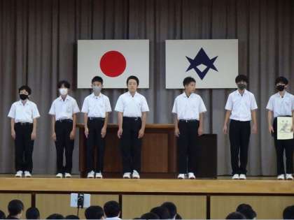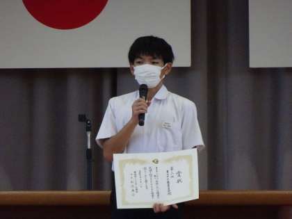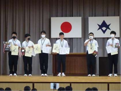 卓球部男子とハンドボール部と弓道部が、大会で収めた好成績を披露し、今後の抱負を語りました。