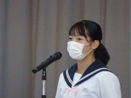 後期生徒会長からは、よりよい藤岡南中学校にするために、全校生徒の思いを吸い上げて、さまざまなことを実現していきたいという決意が語られました。
