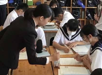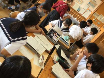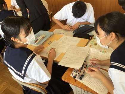 グループで作成した原稿を、他グループと聞き合うなかで、お互いの良さや改善点を伝え合う姿が見られました。