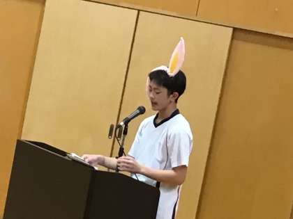 今年度は、校内オープニングスタッフによって企画がなされ、有志発表が行われる運びとなりました。司会運営は生徒会が、本校公式キャラクター「さっくん」の耳飾りをつけて、行いました。
