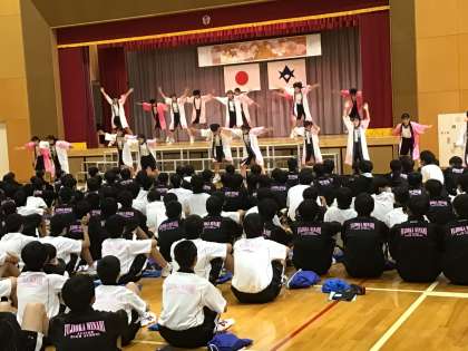 また、ふれあいフェスティバル当日は交流館でのエンディングに参加する「桜の舞隊」が、当日の成功を祈り、全校生徒の前でダイナミックな演舞を披露しました。当日は、14時に交流館のホールでご覧いただくことができます。
