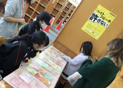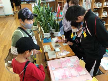 自分達で制作したカードやハガキ、ポチ袋を販売をしました。生徒たちは、お客様と直接触れ合うなかで、より充実感を味わうことができました。